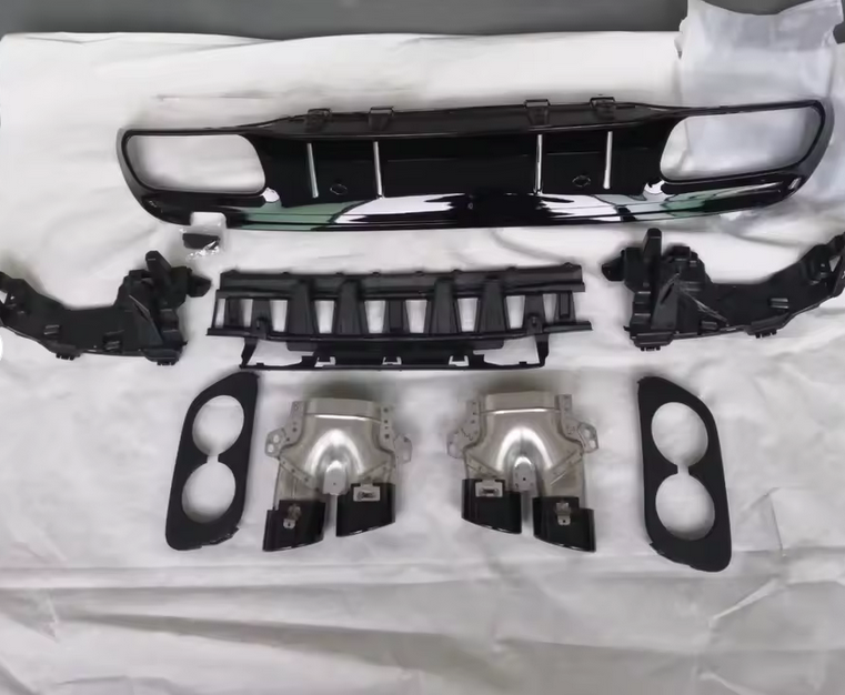 Give your Mercedes-Benz C-Class W205 C43 (2015–2018) a sporty, performance look with this gloss black rear bumper diffuser, including exhaust tailpipes. The set significantly enhances the rear appearance and creates a powerful, modern look.