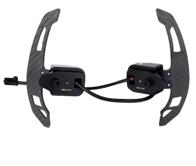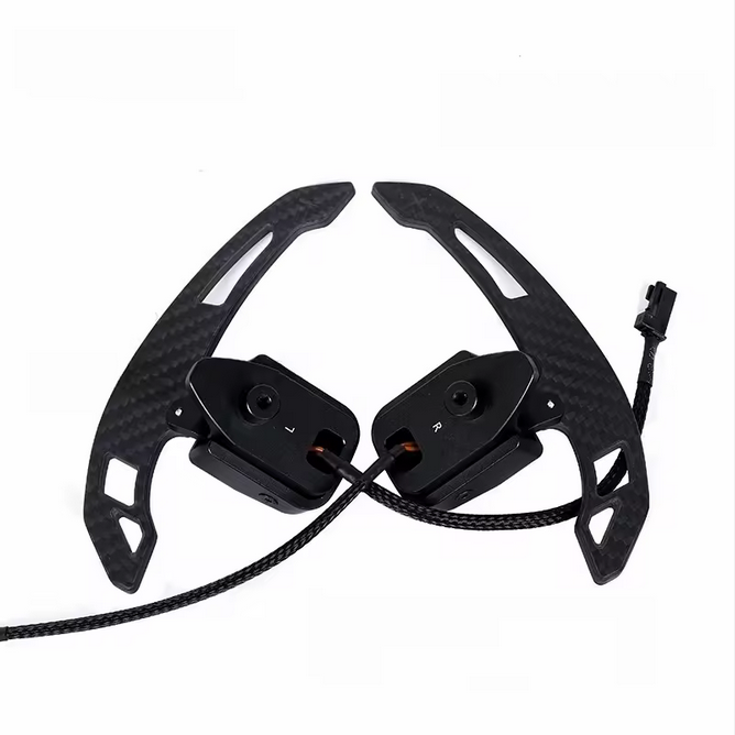 Ces palettes de changement de vitesse magnétiques en fibre de carbone confèrent au volant des Mercedes-Benz Classe E W212 et W213 une sensation de passage des rapports nettement plus sportive et précise. Le mécanisme magnétique intégré assure un clic net et précis et améliore sensiblement le contrôle lors des changements de vitesse manuels.