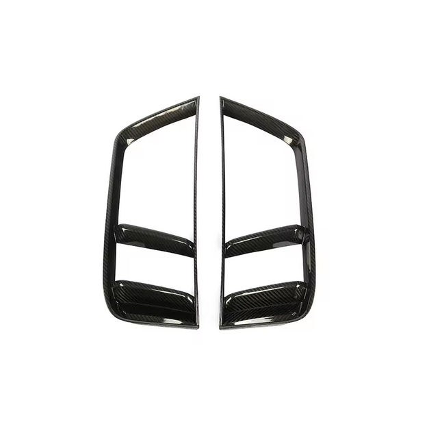 Gefertigt aus echtem Dry Carbonfaser-Material bieten die Lüftungsblenden ein geringes Gewicht bei hoher Stabilität. Die hochwertige Oberfläche sorgt für edle Optik und passt perfekt zu den Serienstoßstangen.