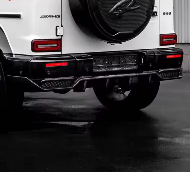 Diese hochwertige Heckstoßstangenlippe aus trockener Kohlefaser (Dry Carbon) ist ein exklusives Upgrade für den Mercedes-Benz W464 ab 2018.